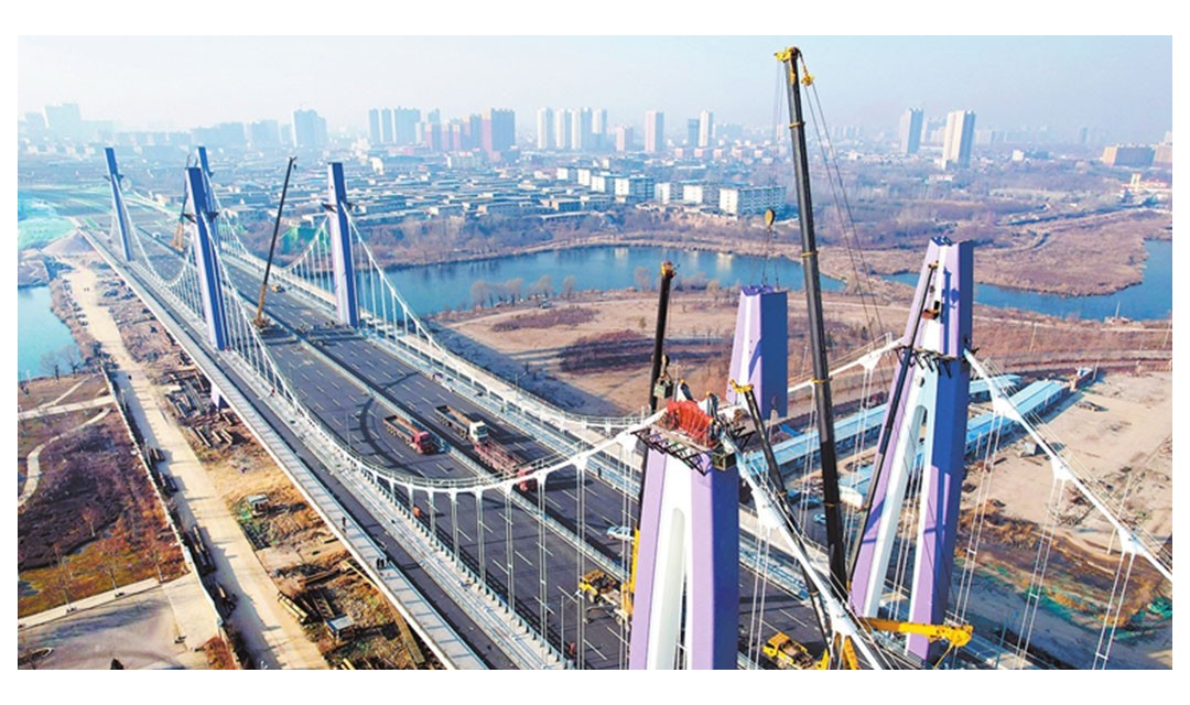 临汾:尧贤街北延工程跨洰河大桥完成乔冠吊装