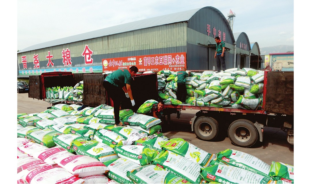 连日来,临汾市尧都区红福泰农业合作社从湖北购进650吨中化化肥、100吨种子,为今年秋粮丰收、冬小麦耕种做好充足准备。图为8...