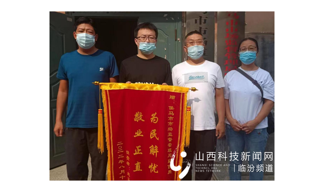 8月18日上午,赵先生将一面绣着“为民解忧、敬业正直”的锦旗送到侯马市市场监督管理局路西所工作人员手中,表达了他对工作人...