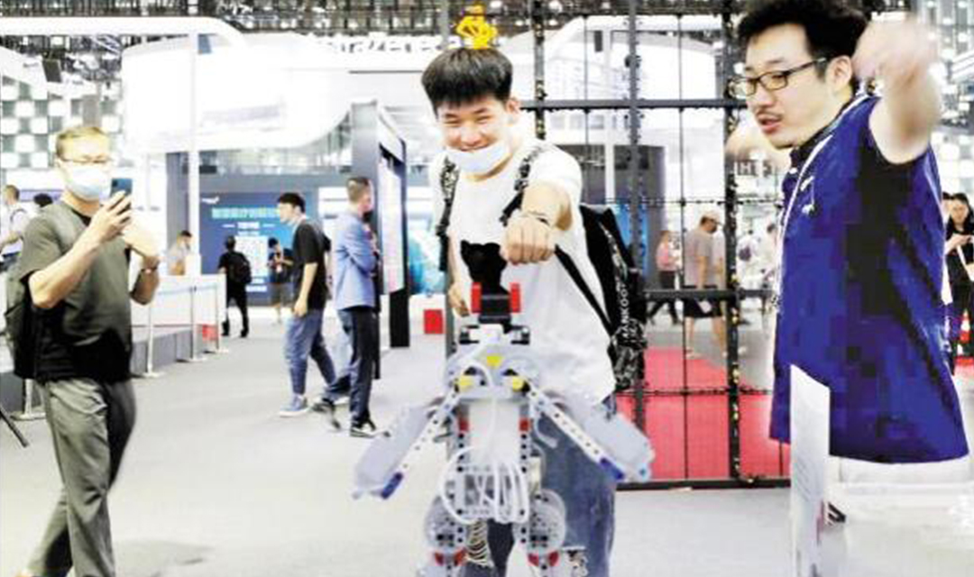 7月8日,参观者在展会现场体验体感机器人玩具。当日,2021世界人工智能大会在上海开幕。本届大会的主题是“智联世界 众智成城...