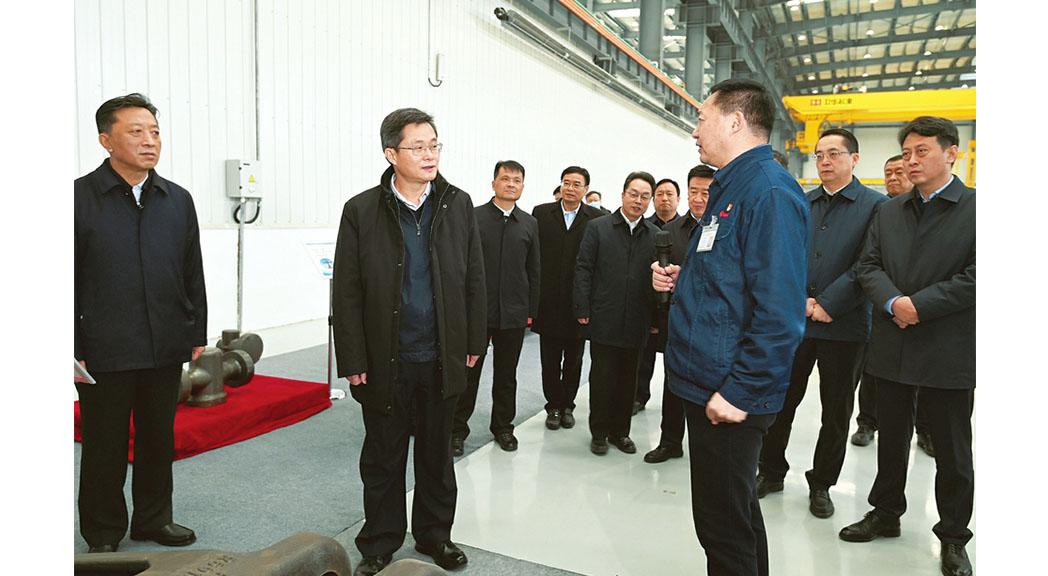 12月20日,省委副书记、省长蓝佛安在中信机电智能制造产业园调研,察看中信机电生产装备和汽车零部件、新材料等样品展示,了解产业链配套情况,并与入园企业负责人深入交流。本报记者李兆民摄