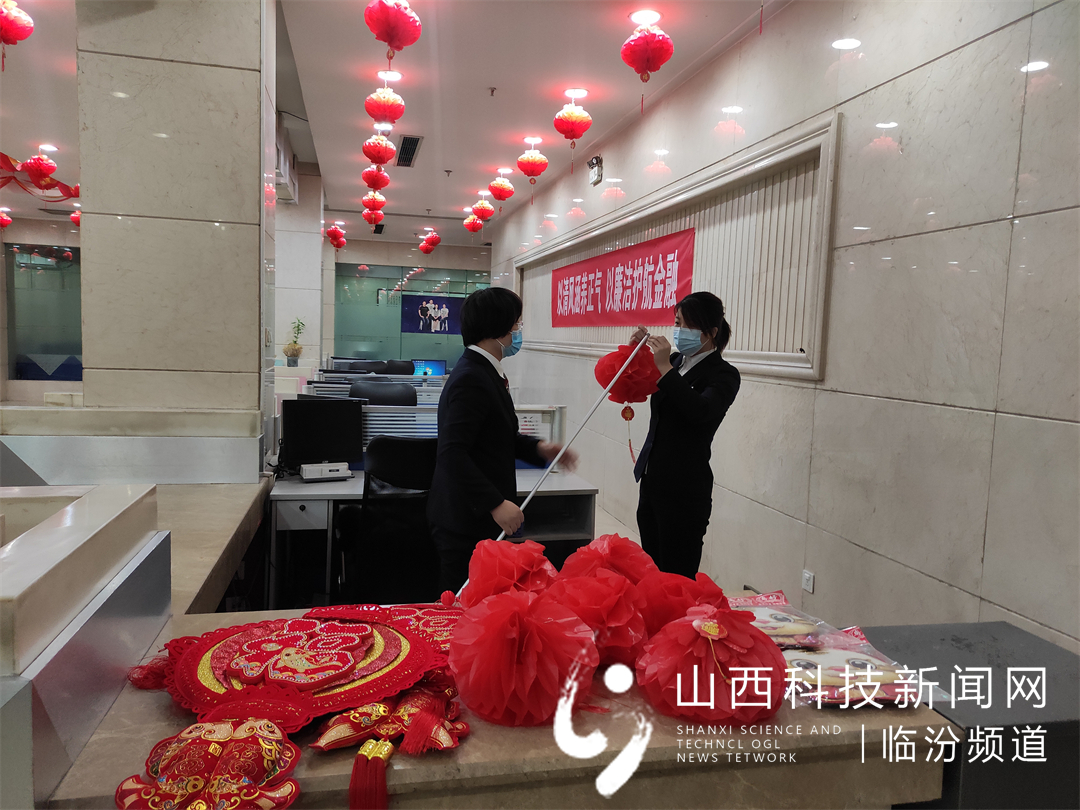 装扮迎新春,网点换新颜。为大力营造节日气氛,尧都农商银行开展了网点装扮活动。经过大家的精心设计和布置,各网点焕然一新——墙上挂满的中国结和红灯笼、别具匠心的窗花点缀、创意无限的柜台摆设……使得营业大厅更温馨整洁,节日氛围扑面而来。大堂经理们热情的发放宣传彩页、赠送的新年小礼品,受到了广大客户的欢迎,掀起了岁末年初业务营销宣传的热潮。