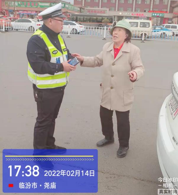 经事后了解,老人今年85岁,现住尧庙中心养老院,事发时在养老院附近尧庙景区遛弯,在感觉到头部突然晕眩后,立即向在附近执勤的临汾公安交警求助。