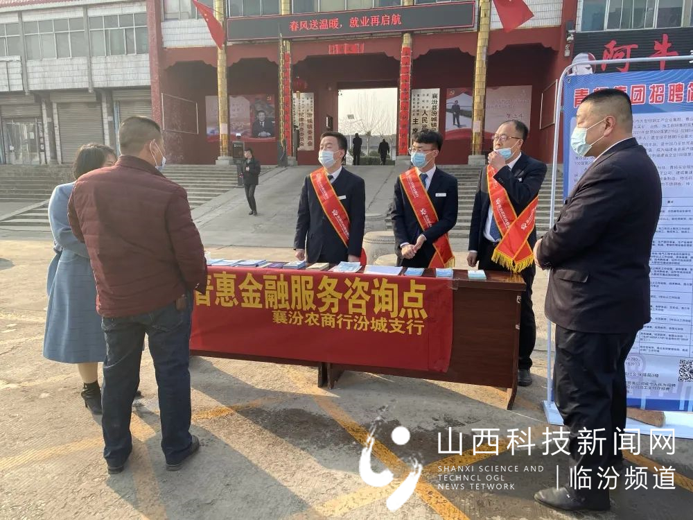 山西科技新闻网临汾讯(高立丰) 近日,由襄汾县人社局牵头,汾城镇政府主办的“春风送温暖 就业再启航”招聘会在汾城镇政府街举行,襄汾农商银行汾城支行以此为契机,包片领导带头主动对接,汾城支行宣传小分队全员出动,通过现场设立普惠金融服务咨询点,将我行金融产品和金融知识送到了招聘会现场,为打算创业的个人、合伙企业、小微企业提供暖心服务,助力“春风行动”为首季“开门红”添动力。