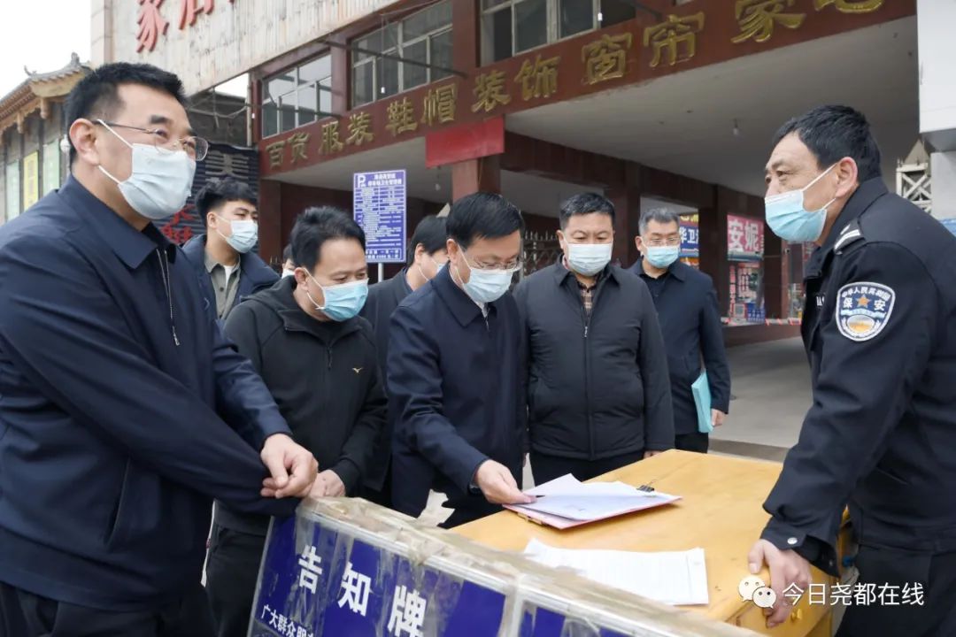 3月6日上午,临汾市尧都区委书记崔绍民前往国控监测点周边区域调研生态环境保护工作,并以“四不两直”方式检查小区、酒店、商场等重点区域疫情防控工作。区委常委、贾得乡党委书记卢燕飞,区委常委、区委办主任温济荟,副区长孔令泽、王洪锁参加。