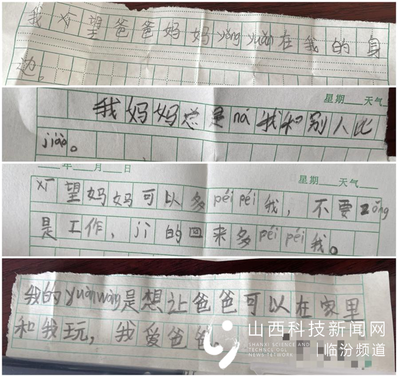 通过翻阅孩子们的小纸条,秦琴老师发现,同学们的烦恼五花八门,有的是家庭环境,有的是家庭教育方式等。而让其感触最深的是,大部分的孩子最期盼的还是希望有父母在身边的陪伴。