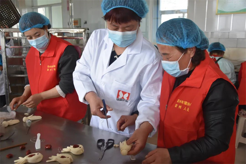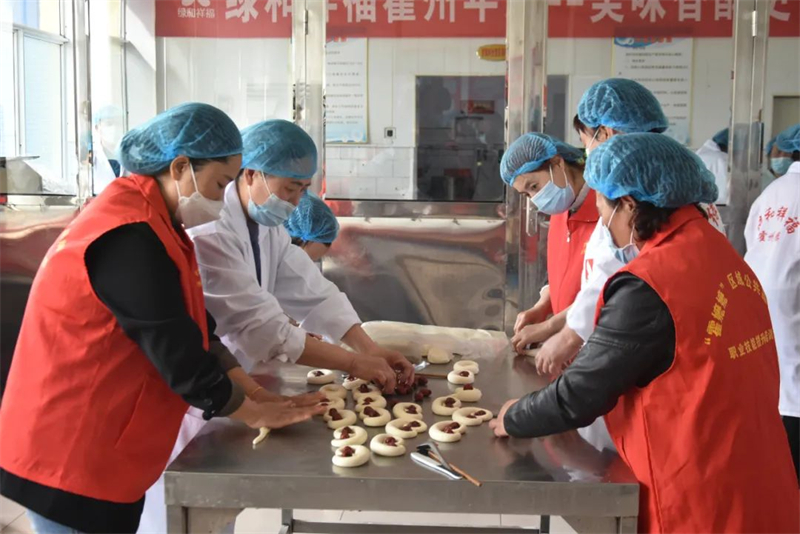 连日来,在霍州市绿和祥食品有限公司生产车间,市年馍职业技能培训班实训现场教、学气氛浓郁。参加霍州市年馍技能培训的学员经过老师逐个手把手指导,一个个栩栩如生的花馍在指尖诞生。