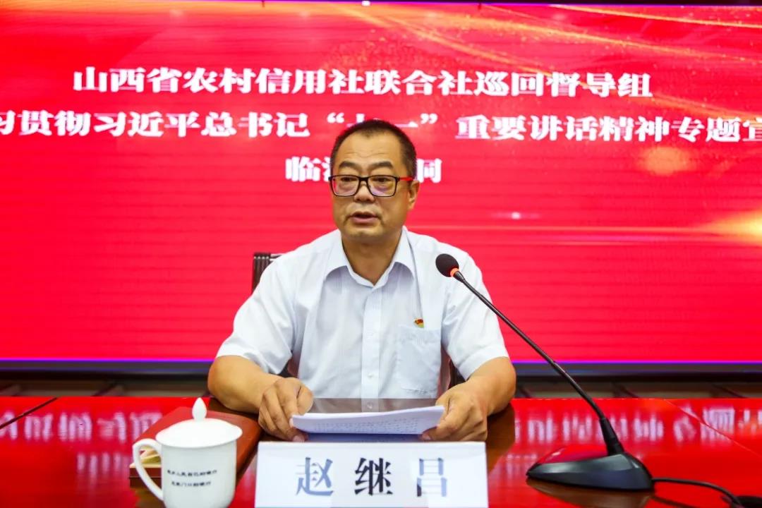 7月29日上午,赵组长在洪洞农商银行做了学习贯彻习近平总书记 “七一”重要讲话精神专题宣讲。洪洞农商银行党委班子,各网点、各中心、各支部负责人现场聆听。