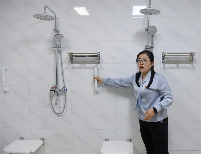 在公共浴室设计建设上,他们坚持以人为本的理念,力求精准提供多元化服务。在淋浴室配备助浴椅、淋浴扶手等专业设施,采用防滑瓷砖加装防滑软垫,充分考虑老年人行动不便问题,确保老人淋浴安全。此外还设有卫生间、理发台等功能区域,从细微之处践行为民服务理念。