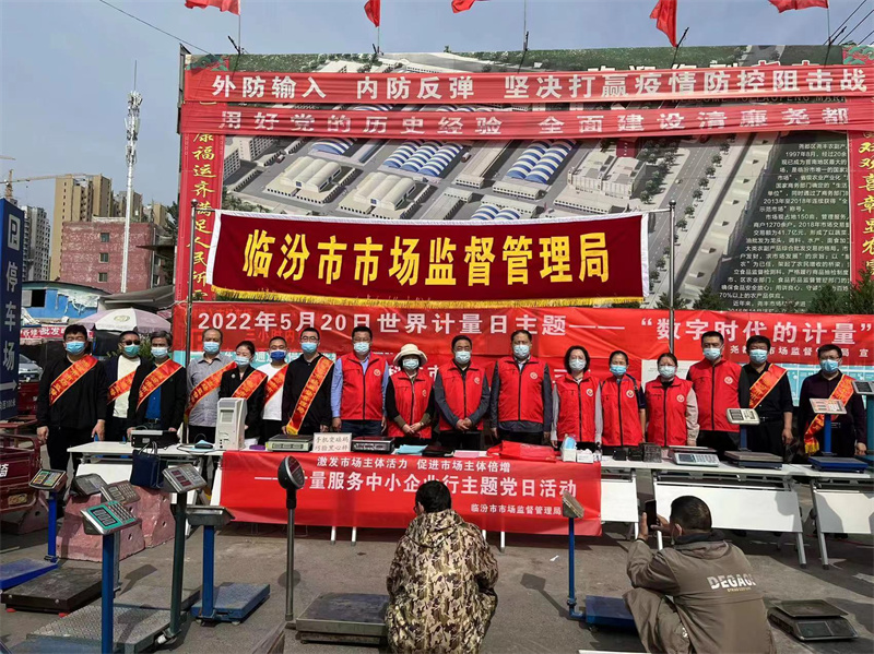 5月20日是第23个世界计量日,为认真贯彻落实临汾市市场监督管理局《培育和激发市场主体活力、全力促进市场主体倍增20条工作措施》,进一步提升计量工作的社会认知度和影响力,机关第四党支部于5月18至20日在市尧丰农贸市场、馨阳农贸市场、坂下农贸市场开展了激发市场主体活力、促进市场主体倍增,计量服务中小企业行主题党日活动。