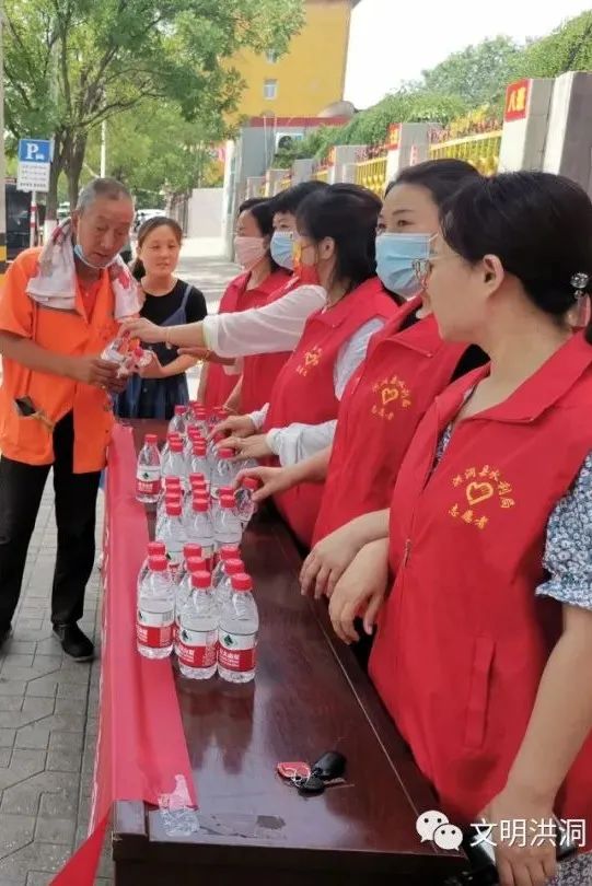 为了给广大考生及陪考家长提供贴心便利的助考服务,洪洞县水利局组织巾帼志愿者开展“情暖六月•爱心助考”志愿服务活动,在西街小学考点设置志愿服务爱心助考加油站,为参加中考的莘莘学子和考生家长送去了夏日里的清凉。
