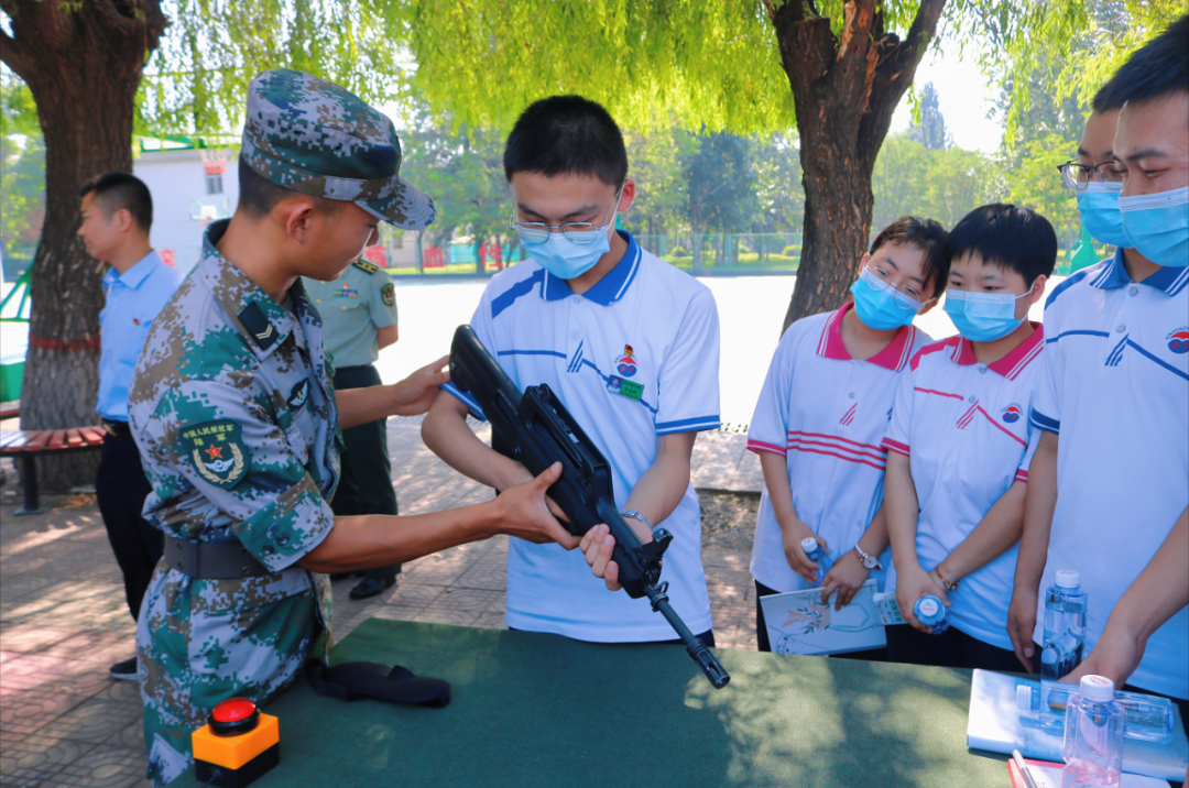 座谈结束后,学校师生代表们,共同观摩了部队的会操表演以及士兵蒙眼拆装枪支比赛,步伐整齐划一,口号铿锵有力,拆装枪支一气呵成,师生不停的掌声和赞美声是对他们刻苦训练和保家卫国的礼赞。