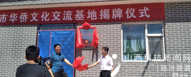翼城县县委统战部部长杨文明和西阎镇党委书记赵生贵共同为临汾市华侨文化交流基地揭牌。