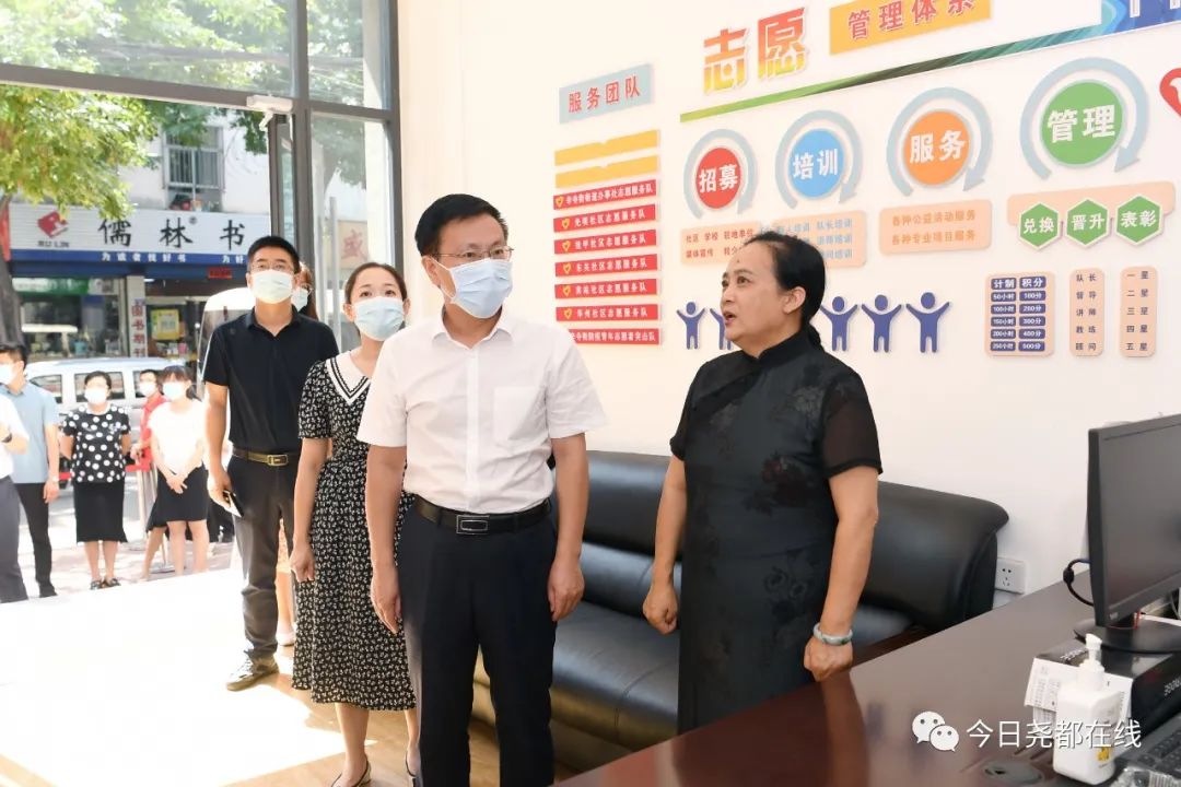 在辛寺街华州社区党群服务中心、乡贤街贡院社区碧云轩小区党群服务驿站,崔绍民通过实地查看、翻阅资料、听取汇报、深入交流等方式,详细了解了基层党组织建设、社区治理和疫情防控等工作开展情况。