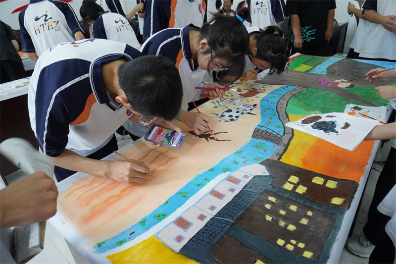 此外,支队协同共青团洪洞县委举办“清音入槐”——洪洞优秀高中生暑期素质拓展营,期间与当地高中生共绘的“我眼中的家乡”三幅巨画得以在工作站所在地秦壁村展出。