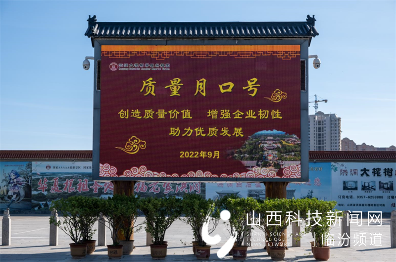 山西科技新闻网临汾讯 一年一度的全国质量月如期而至。中共中央政治局常委、国务院总理李克强对2022年全国“质量月”活动作出重要批示:质量是立业之本、强国之基,事关民生福祉。作为百余项重要品牌荣誉获得者的新型文旅企业,洪洞大槐树寻根祭祖园有限公司紧跟国家脚步,积极响应“推动质量变革创新 促进质量强国建设”号召,于9月1日全面启动“质量月”活动。