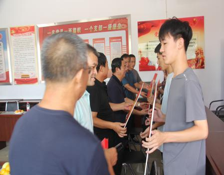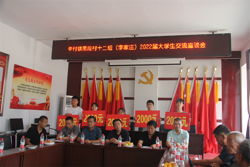 山西科技新闻网临汾讯(张天鸣)近日,洪洞重八席大酒店董事长张新平参加了辛村镇南段村十二组(李家庄)2022届大学生交流座谈会。期间,给该村考上大学的5名学子每人资助2000元,共计10000元。并鼓励每位学子在大学期间,不要辜负重八席人寄予的厚望,刻苦学习,勤奋思考,早日成才。