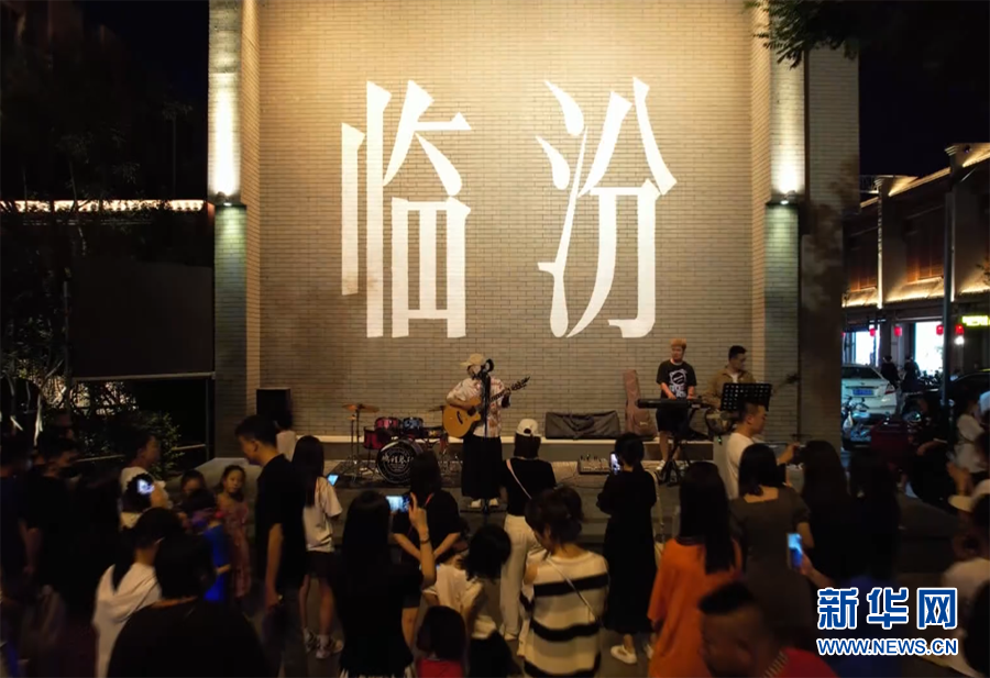 “临汾”网红墙前,经常有乐队表演。新华网 发