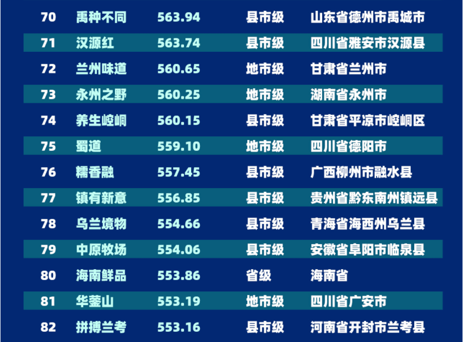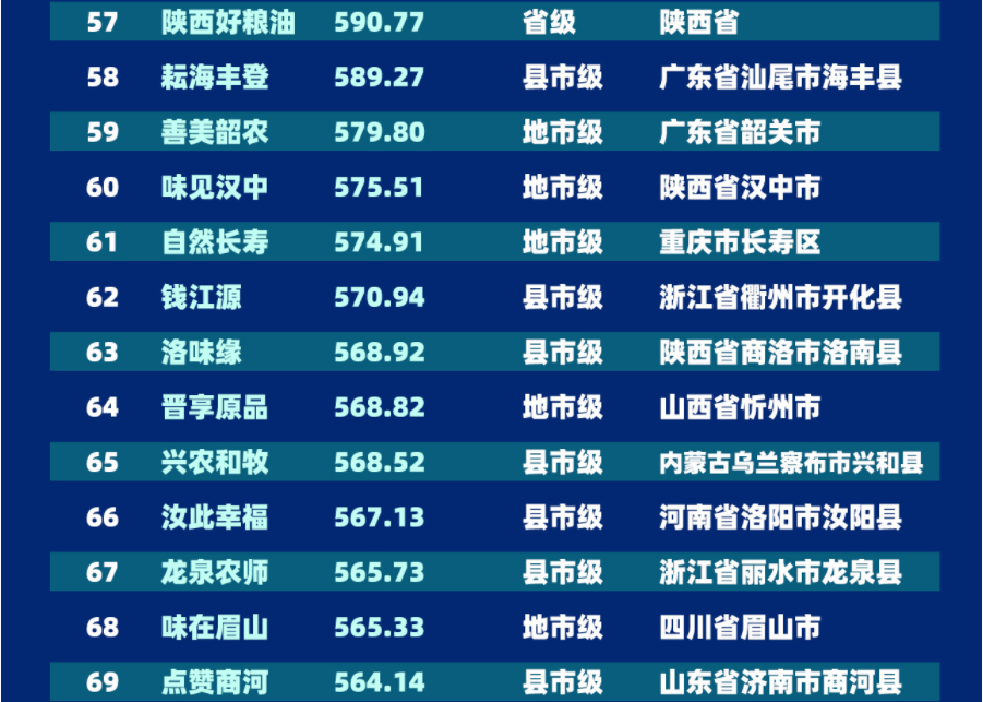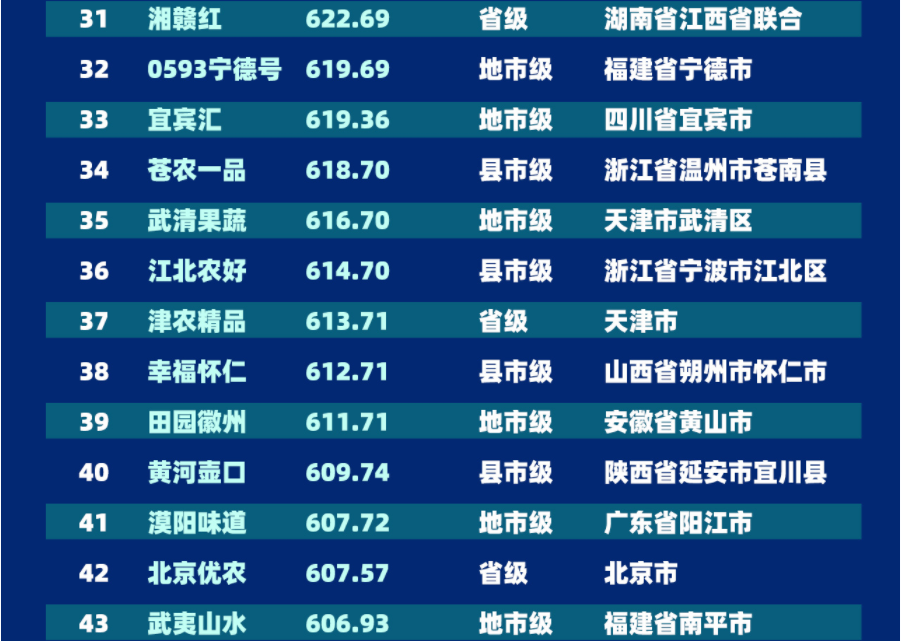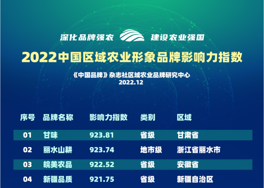 “2022中国区域农业形象品牌影响力指数TOP100”