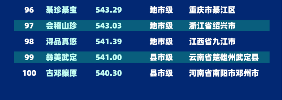 地市级排名第三