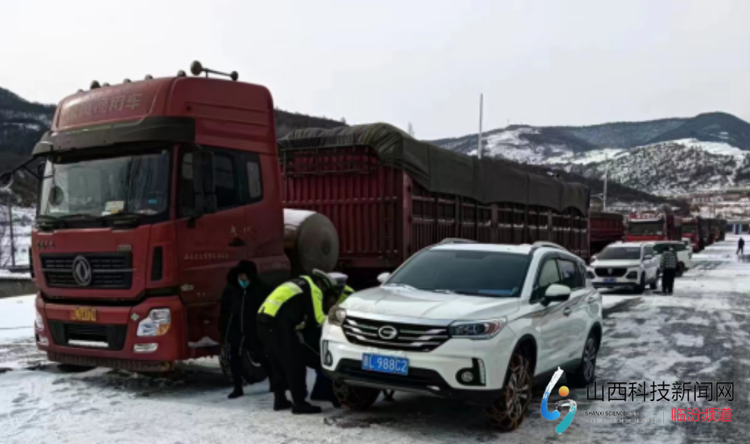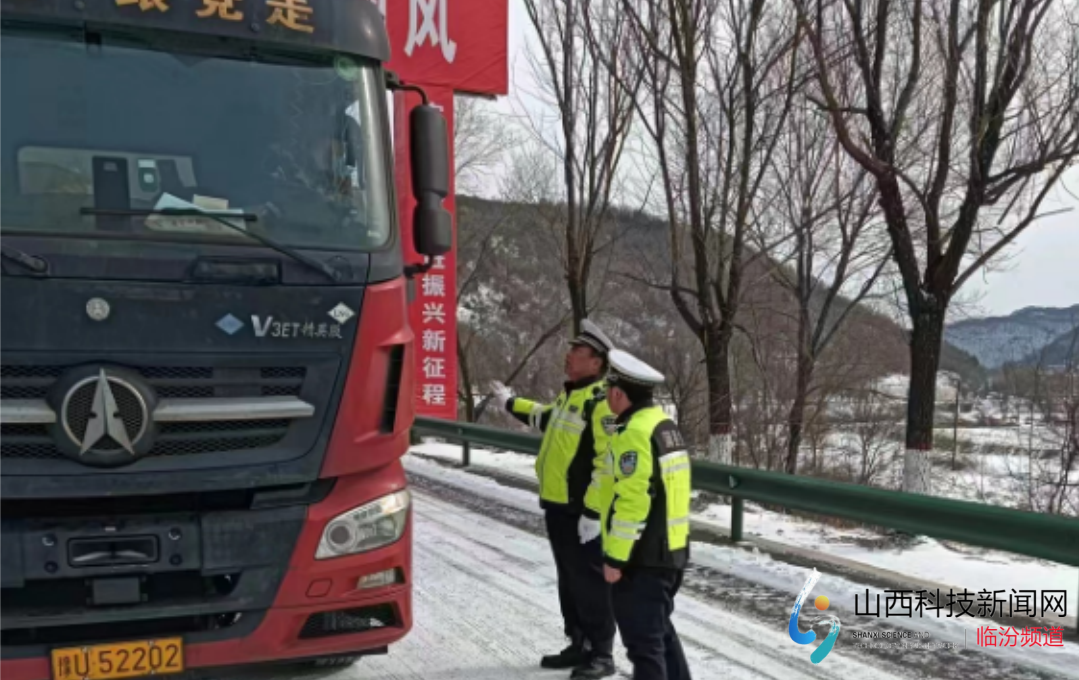 山西科技新闻网临汾讯 1月14日,一场瑞雪让蒲县银装素裹,人们沉浸在大雪带来喜悦的同时,该县公安局交通警察大队乔家湾中队接命令到尚店村劝导站对辖区内滞留车辆进行帮扶劝导。