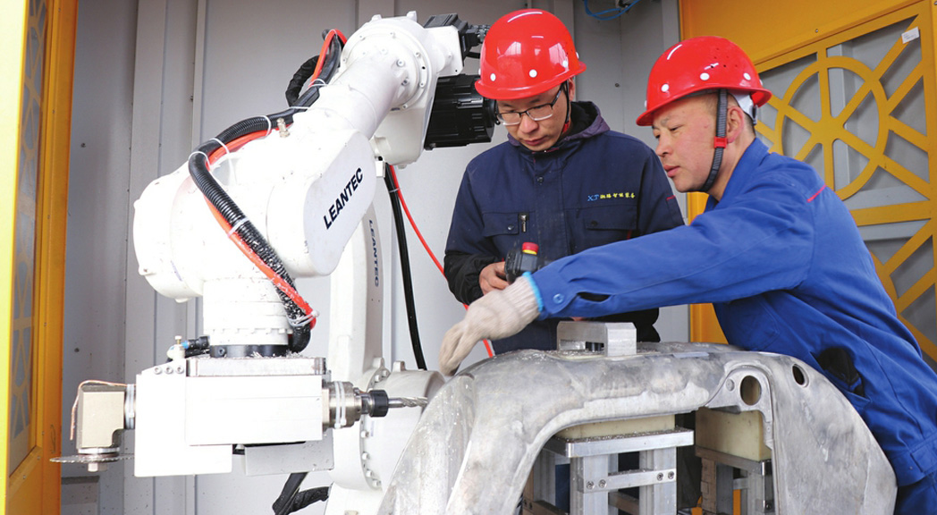 山西科技新闻网临汾讯 浮山县深入推进“两个转型”,引进智能高端制造业项目,筑牢高质量发展根基。图为临汾市浮山县苏晋产业园新能源汽车零配件项目制造车间,技术人员正在调试智能机械手臂。(卫琦)