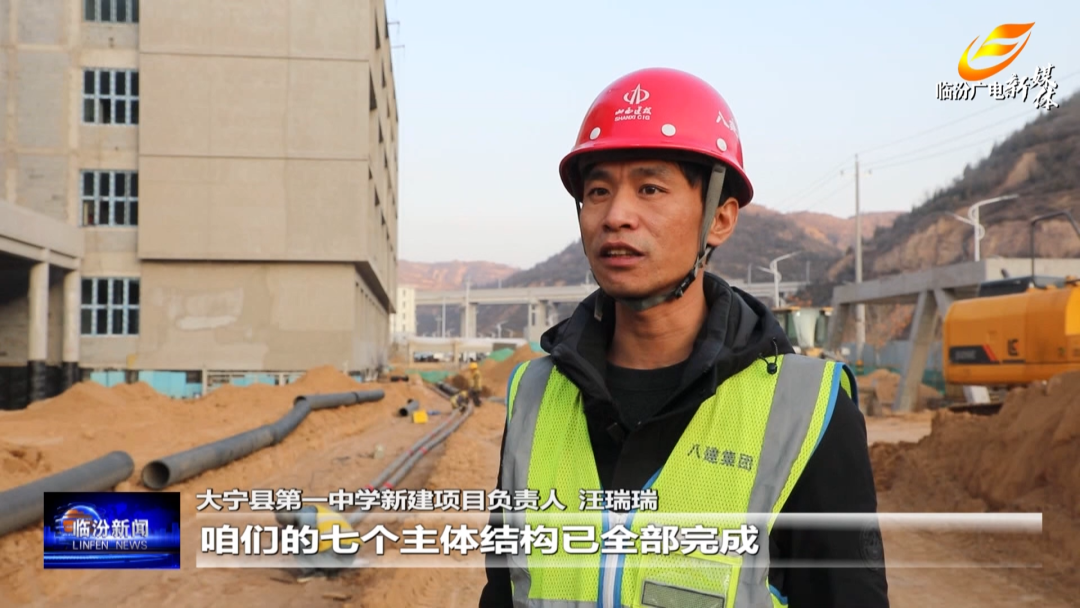大宁台 张艺琳:我现在是在大宁县第一中学新建项目施工现场,在我身后大家可以看到,崭新的教学大楼已经拔地而起,工人师傅们正加紧施工,冲刺室内外装修和配套设施建设工作。