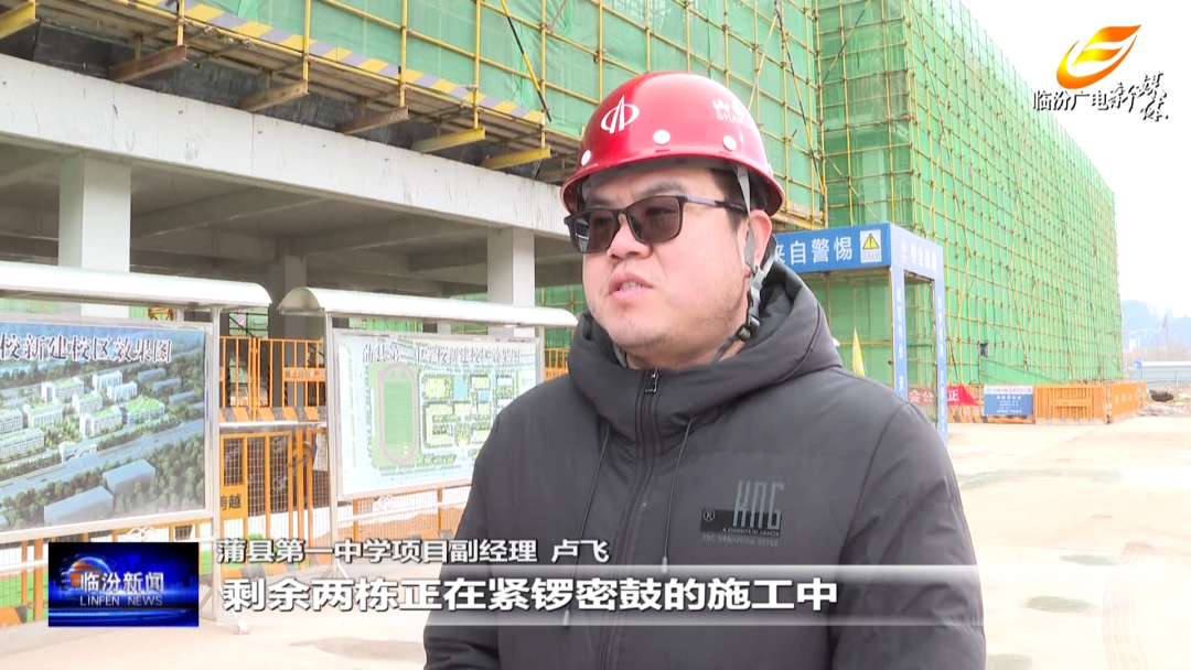 蒲县第一中学项目副经理 卢飞:蒲县一中新校区项目有单体建筑共九栋,目前有七栋封顶,剩余两栋正在紧锣密鼓的施工中。目前施工材料已全部到达现场。下一步,将根据县委县政府、县教育局的施工要求,倒排工期,全面安排施工,保证按时按点完成施工任务。