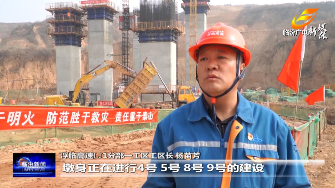 浮临高速LJ1分部一工区工区长 杨苗芳:前河大桥总长600米,共有15垮桥墩,工程主要分为桩基、墩身、桥面三部分。目前桩基和墩身同步施工,墩身正在进行4号、5号、8号、9号的建设,桩基共完成了有160根左右。下一步,我们将倒排工期,加班加点,在确保质量和安全的前提下,全力冲刺今年11月份完成大桥建设任务。