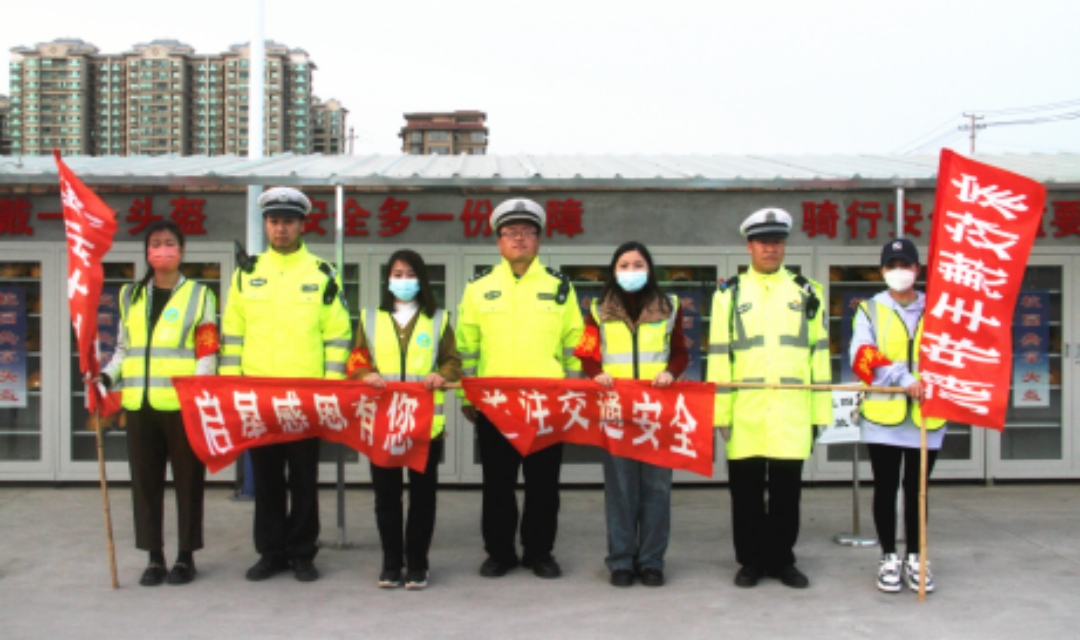 积极联络沟通临汾市文明交通志愿者协会,牵头组建家长、护学志愿服务队和学校保安护学队,全面整合社会力量,形成以交警为主导,学校和社会志愿服务为辅助的“警家校”护学工作模式。
