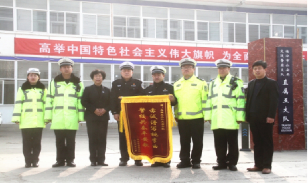 在长期的不懈努力下,“警家校”护学模式得到了校方的认可和支持。近日,辖区启星学校负责人一行专门来到交警支队直属五大队驻地,将一面书写“赤诚谱写桃李曲,警校共奏平安歌”的锦旗送到了民辅警手中,以此表达对交警护学工作的感激之情。