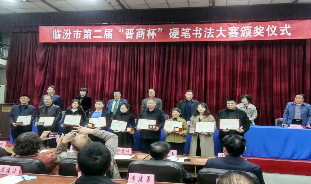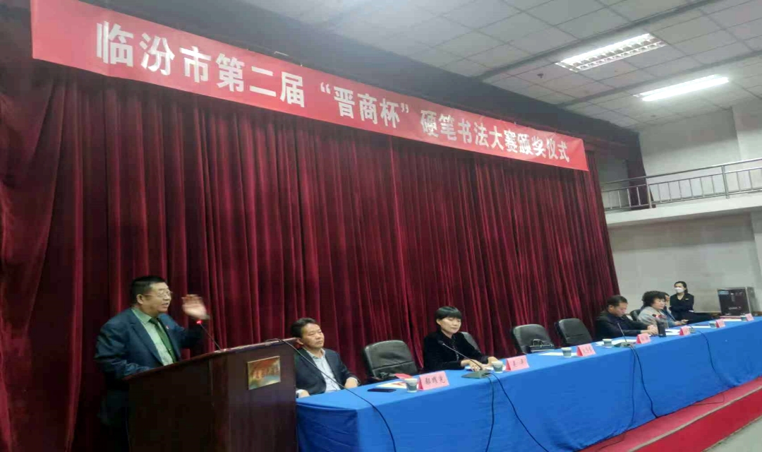 临汾市硬笔书法协会主席张胜、临汾市书法协会、硬笔书法协会副主席张俊泽、临汾市书协副主席、硬笔书法协会副主席刘旭山、临汾市好运来文化传媒有限公司刘志东总经理、临汾开发区肆拾玖坊晋商众创平台郗耀光总经理、临汾日报社高级记者、编委黄俊英、临汾市硬笔书法协会秘书长吴平出席此次大赛颁奖仪式。