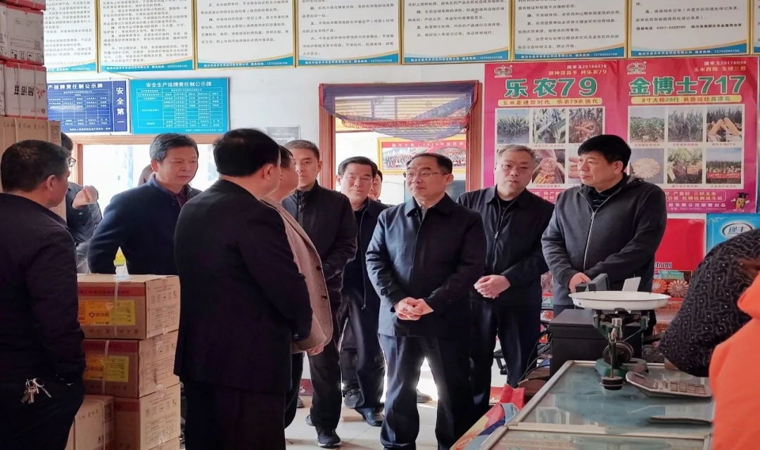 乔飞鸿一行先后来到金殿镇益农丰农业科技有限公司、金殿镇界峪村小麦玉米两茬平作农业科技示范基地,通过听取汇报、实地查看等方式,就农机备耕、小麦春季节水灌溉、农资储备、小麦草害防治等情况进行调研。