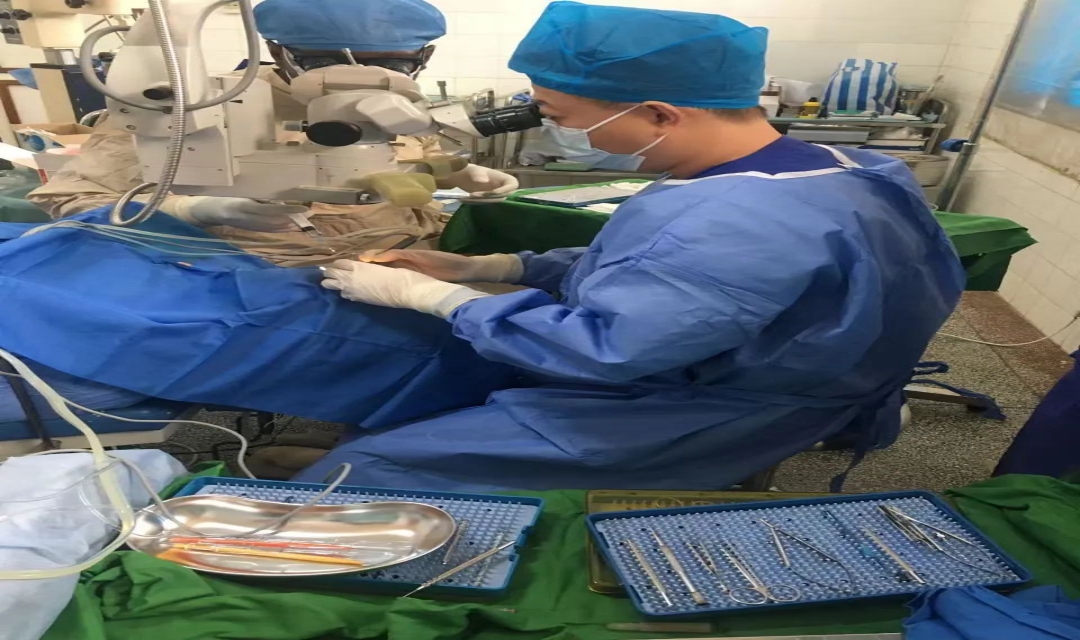 王东利用休息时间对闲置6年的超声乳化设备进行了全面检查、反复调试,让设备得以正常运行,并从设备性能、参数设定、手术流程和实操规范等方面,手把手指导当地医生。