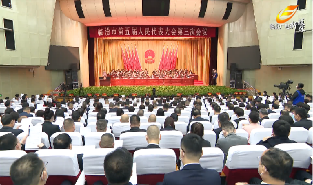 上午9时,袁振旭宣布:临汾市第五届人民代表大会第三次会议开幕。全体起立,奏唱国歌。