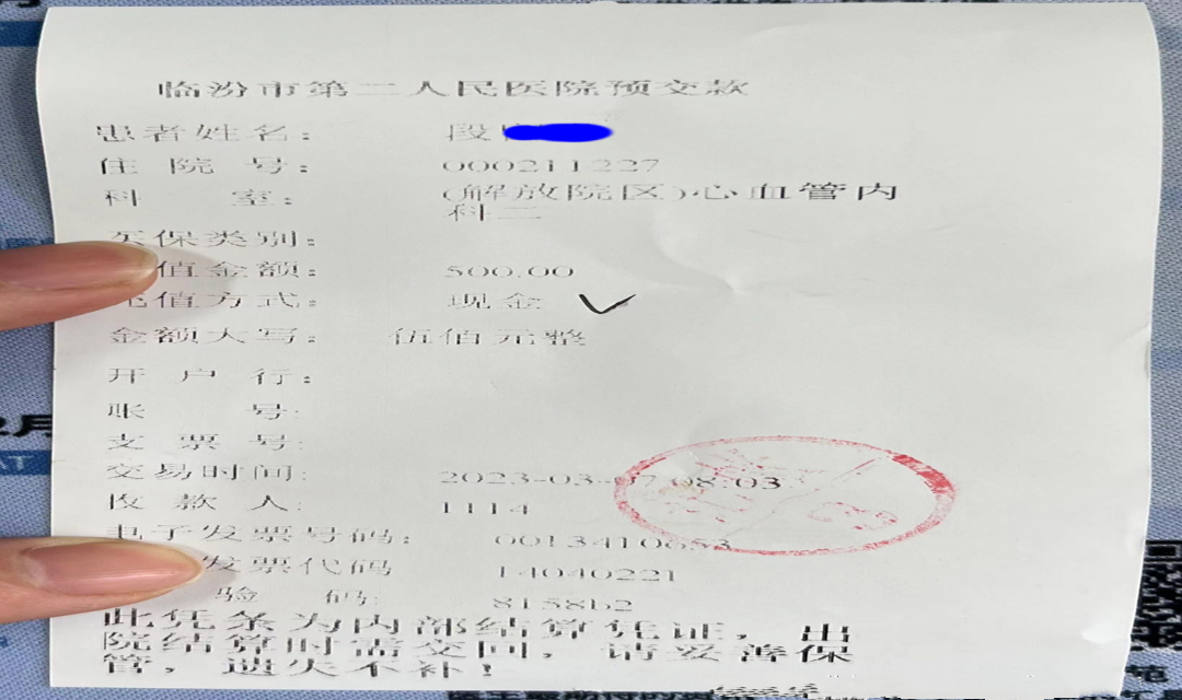 山西科技新闻网临汾讯 近日,在临汾职业技术学院第一附属医院,心内科二病区住院的患者段某,突然收到一张500元的住院费收据,家属表示没有交过这笔住院费。