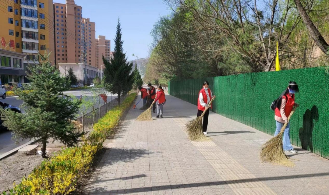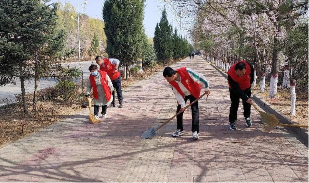 隰县教育局党(工)委志愿者在责任区域开展环境整治活动。