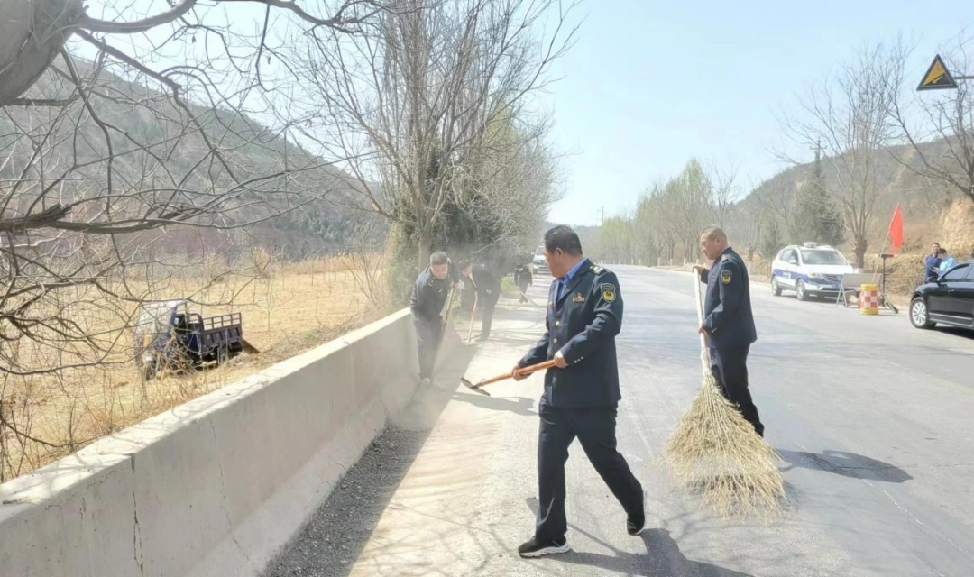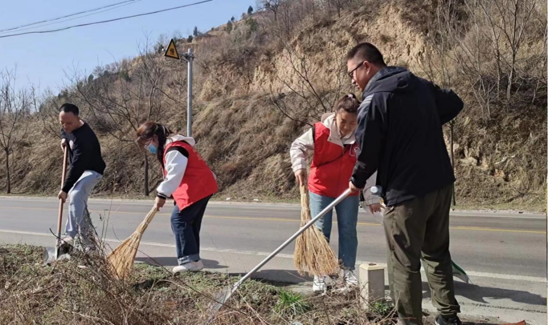 隰县政府机关党委志愿者在责任区域开展环境整治活动。