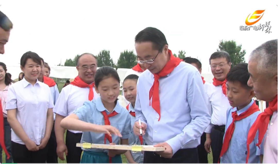 在汾河文化生态景区尧井园,孩子们的欢声笑语回荡在每个角落。来自临汾市第一中心学校和临汾市特殊教育学校的学生们剪窗花、写对联、踢足球、制作手工……王延峰等市领导们驻足观看,饶有兴致地欣赏孩子们的绘画、书法、手工作品,认真观看合唱表演《在灿烂阳光下》,并不时与孩子们沟通交流,给予赞许和表扬。 在市博物馆,郝忠祥一行与孩子们一起参加庆祝活动。博物馆内,涵盖书法、绘画、剪纸等优秀作品展,融入了学生对党、对祖国的热爱和对艺术的追求;时而凌空盘旋、时而急速俯冲的无人机表演,让孩子们感受到了科技的魅力;红色故事情景剧传达和歌颂了革命英雄热爱国家、热爱人民,为国家和人民不惧牺牲、英勇奋斗的精神。郝忠祥一行认真观看儿童作品展览和相关表演,并与孩子们一起参观了博物馆,边看边交流互动。郝忠祥希望孩子们多了解临汾厚重的历史文化,不断增强爱家乡、爱临汾的情感,长大后把临汾建设得更加美好。庆祝活动结束了,但孩子们的欢乐还在继续,这个不一样的“六一”儿童节注定是难忘的。从一张张灿烂的笑脸、一阵阵清脆的笑声中,我们仿佛看到了临汾美好的未来,让我们一起爱临汾·赢未来。