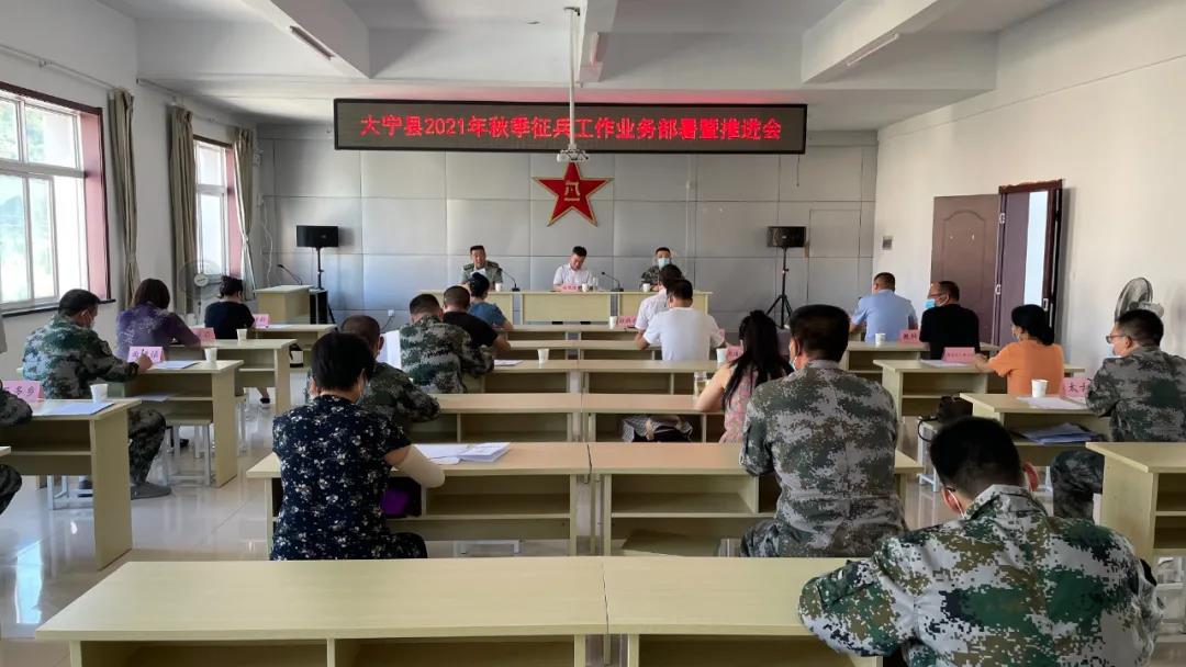 8月9日下午,大宁县召开2021年秋季征兵工作业务部署暨推进会。县委常委、人武部政委、县征兵领导组副组长刘开元,县委常委、副县长、县征兵领导组副组长许华伟出席会议,县征兵领导组成员单位负责人参加会议。
