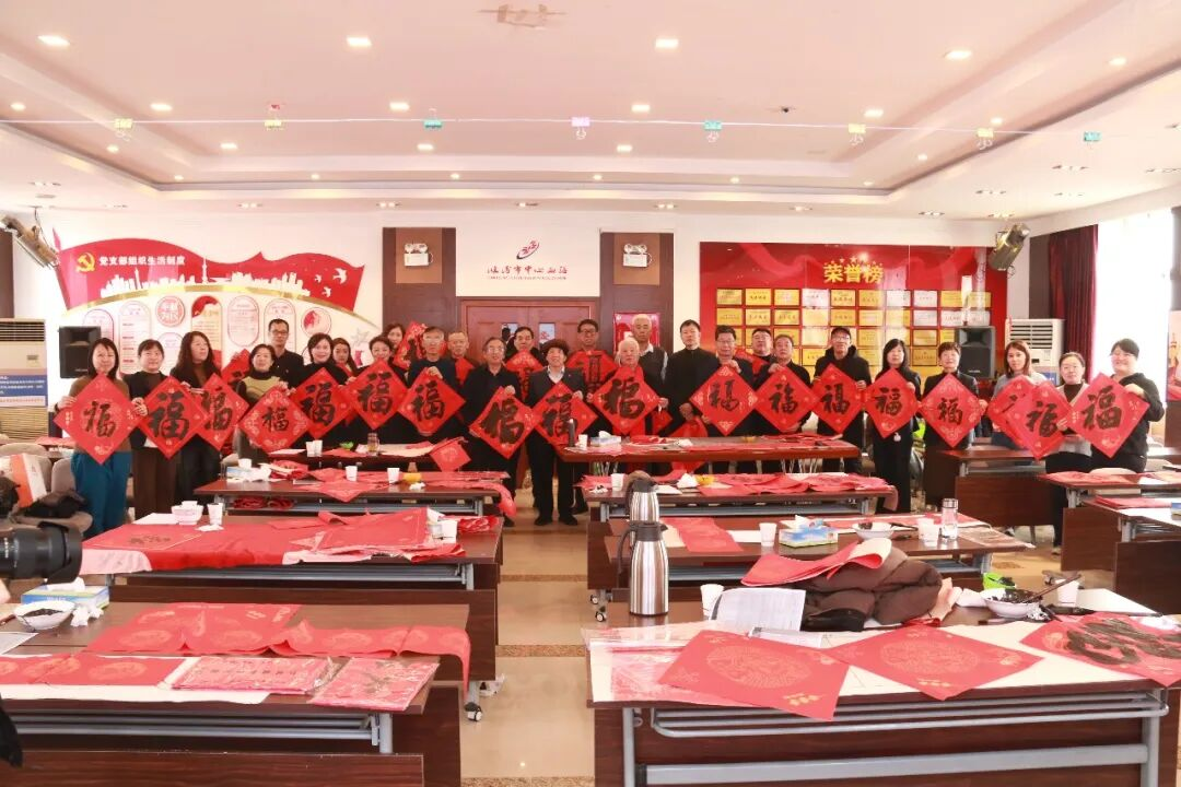 福赠春联祈平安,奋笔挥毫迎新春。为弘扬中国传统文化,营造欢乐祥和的节日氛围,丰富职工的精神文化生活,2月3日,临汾市中心血站联合临汾市楹联学会开展“热血书大爱 墨香颂仁心”主题写对联活动,临汾市中心血站党支部书记、站长郭海艳,支委领导班子,广大党员、干部、职工参与此次活动。并特邀中国楹联学会会员、山西省楹联艺术家协会副主席、临汾市楹联学会会长刘琳等13位艺术家,为血站全体职工带来了珍贵的墨宝、送上新春的祝福。