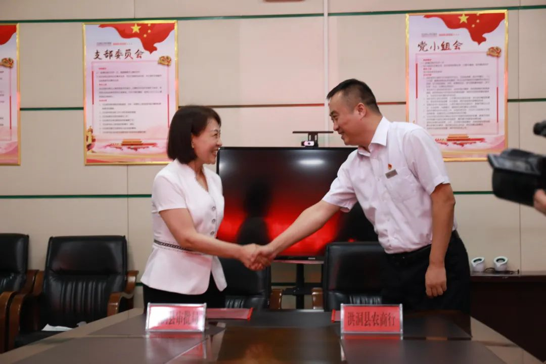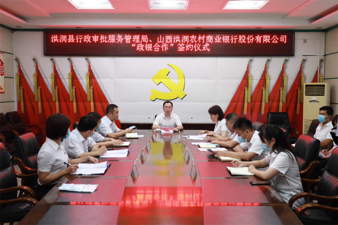 洪洞县委常委、政府副县长冯定国出席签约仪式,县行政审批服务管理局局长张莉,副局长许海生,洪洞农商行党委书记徐海港,党委副书记、行长闫忠红,党委委员、副行长孙清民及相关部门负责人参加签约仪式。