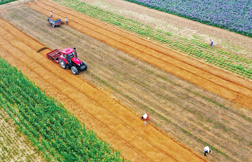 襄汾县新城镇伯社村,村民利用农业机械收获中药材柴胡。近年来,襄汾县大力发展中药材种植特色产业,引导农民和专业合作社种植柴胡、远志、芍药、丹参、黄芩等中药材,形成了集种植、加工、销售、物流为一体的产业发展新路子,带动当地农民增收致富,推进乡村全面振兴。(李现俊摄)