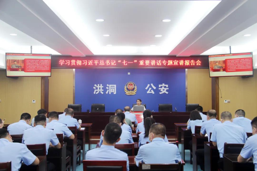 山西科技新闻网临汾讯 为深入学习贯彻习近平总书记在庆祝中国共产党成立100周年大会上的重要讲话精神,推动党史学习教育深入开展,8月13日上午,洪洞县公安局举行了学习贯彻习近平总书记“七一”重要讲话精神专题宣讲报告会。邀请了县统计局局长陈霞作宣讲报告。全体局领导、驻局纪检监察组组长、交警大队班子成员、各科、室、所、队负责人参加会议;各派出所设分会场,派出所全体人员、辖区内交警中队人员在分会场收听收看会议。