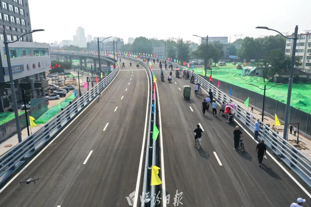 上午9时06分许,闫晨曦宣布“解放东路高架桥工程竣工通车”。