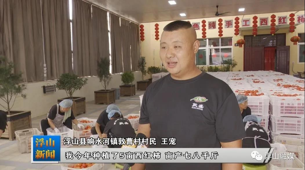 浮山县响水河镇敦曹村村民 王宠:我今年种植了5亩西红柿,一亩地收成在七八千斤。送到外面是五六毛钱,送到这厂子里是一块,多四五毛,今年能收入3万多块钱。