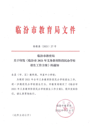 临汾市教育局关于进一步规范义务教育阶段民办学校招生工作的紧急通知