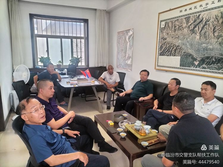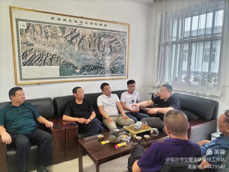 张王平同志带领设施科相关人员、蓬门村“两委”班子及支队驻村帮扶工作队首先来到隰县公安局交警大队进行座谈。他首先细致传达了曹国刚支队长的指示,曹支队长指出:一是支队下乡办及支队巩固帮扶工作队在开展帮扶工作中,一定要发挥交警支队的特色,强化交通安全宣传,提高蓬门村村民的交通安全意识;二是按照属地管理的原则,要联合隰县交警大队推进落实蓬门村“交通安全村”建设工作及“两站两员”相关工作,开展交通安全管理帮扶促乡村振兴;三是隰县交警大队要从推进落实蓬门村道路交通安全“两站两员”(乡镇交通管理站及农村交通安全劝导服务站,乡镇专职交通管理员及农村交通安全协管员)相关工作开始,按照“政府领导、部门协作、齐抓共管、社会联动、综合治理”的工作思路,按照“党政同责、一岗双责”的要求,将农村交通安全工作及交通安全“两站两员”建设工作,按照省市道路交通安全工作领导小组近期会议的主要精神要求,争取隰县县委县政府的大力支持,全力推动隰县农村道路交通安全管理工作及“两站两员”工作向前稳步迈进。随后大家就蓬门村路口存在的交通安全隐患进行了细致的分析研判,并认真聆听了隰县交警大队长于锟同志的分析及建议,于锟大队长表示一定认真落实曹国刚支队长的指示精神。