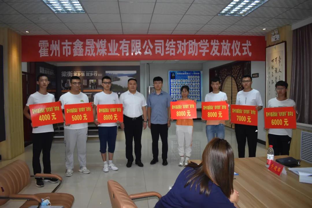 仪式上,靳阳阳同鑫晟煤业有限公司负责人为7名受助学生发放助学金,并为鑫晟煤业有限公司颁发“结对助学”先进单位荣誉证书。随后,受助学生代表、教师代表、市一中、市爱心助学基金会负责人分别进行发言。