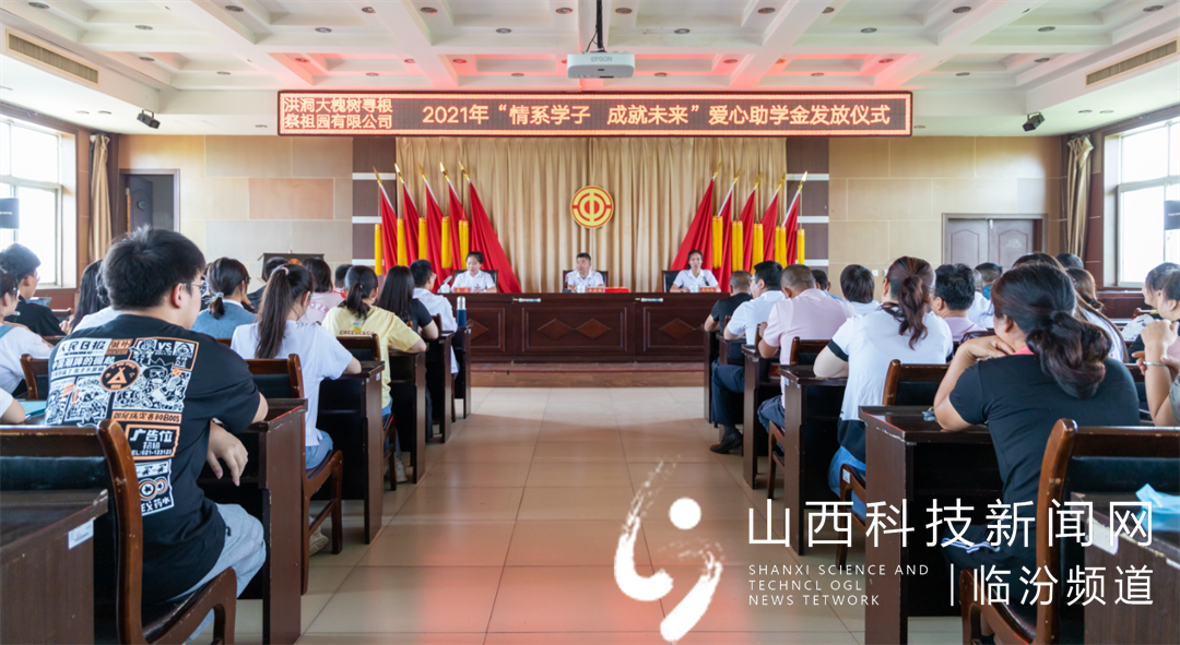 山西科技新闻网临汾讯(张希有 曹国强) 十年寒窗磨一剑,直指金榜题名时,又到了硕果累累的学业收获季节。为帮助更多品学兼优的学子完成学业,弘扬传统美德,彰显社会正能量,洪洞大槐树寻根祭祖园有限公司在8月26日上午举办了2021年“情系学子、成就未来”爱心助学金发放仪式。公司党总支书记、总经理王宏健、党总支副书记靳玲玲、工会主席李莉及友好村邻村委会主任、受助学生、家长等50余人参加了仪式。